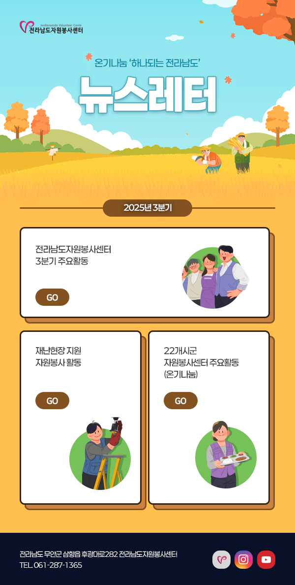 [2025년 3분기] 전라남도자원봉사센터 뉴스레터 페이지 정보 작성자 최고관리자 조회 51회 작성일 25-11-17 10:46 본문 목록 다음글[2025년 2분기] 전라남도자원봉사센터 뉴스레터 25.08.20
